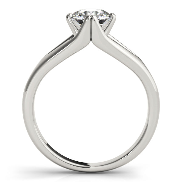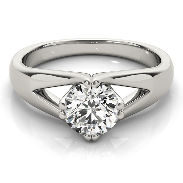 This product can accommodate a round diamond shape. Available in 14K, 18K white, yellow and rose gold, as well as Platinum. Center diamond included. Matching wedding band sold separately.